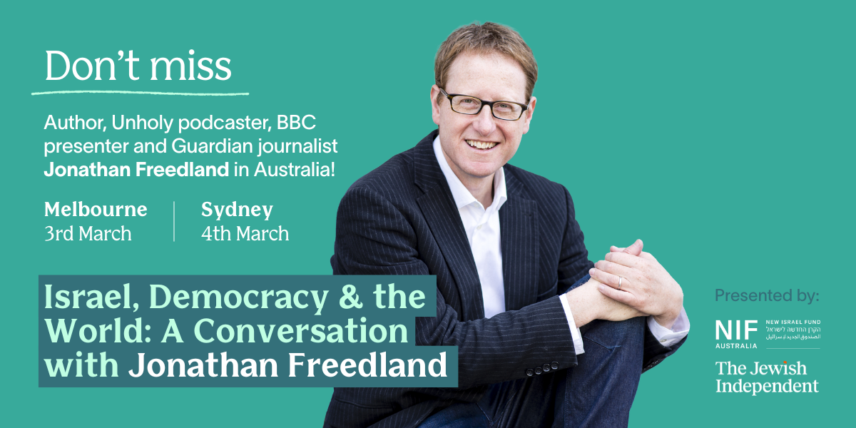 Join award-winning Guardian journalist, author, BBC broadcaster and podcaster Jonathan Freedland in discussing global politics, Israel and the Jewish world. Hosted by the New Israel Fund Australia and The Jewish Independent, don't miss the chance to hear his penetrating insights and nuanced discussions on the world today.